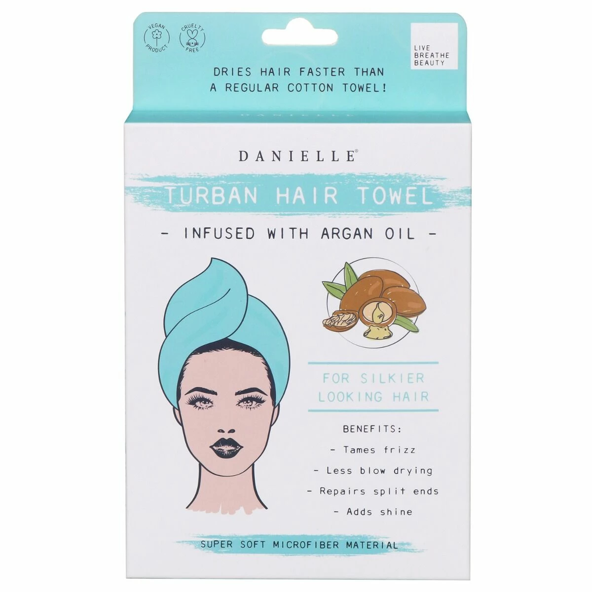 Dry your hair with this super soft microfibre hair towel infused with argan oil. Your hair will thank you!