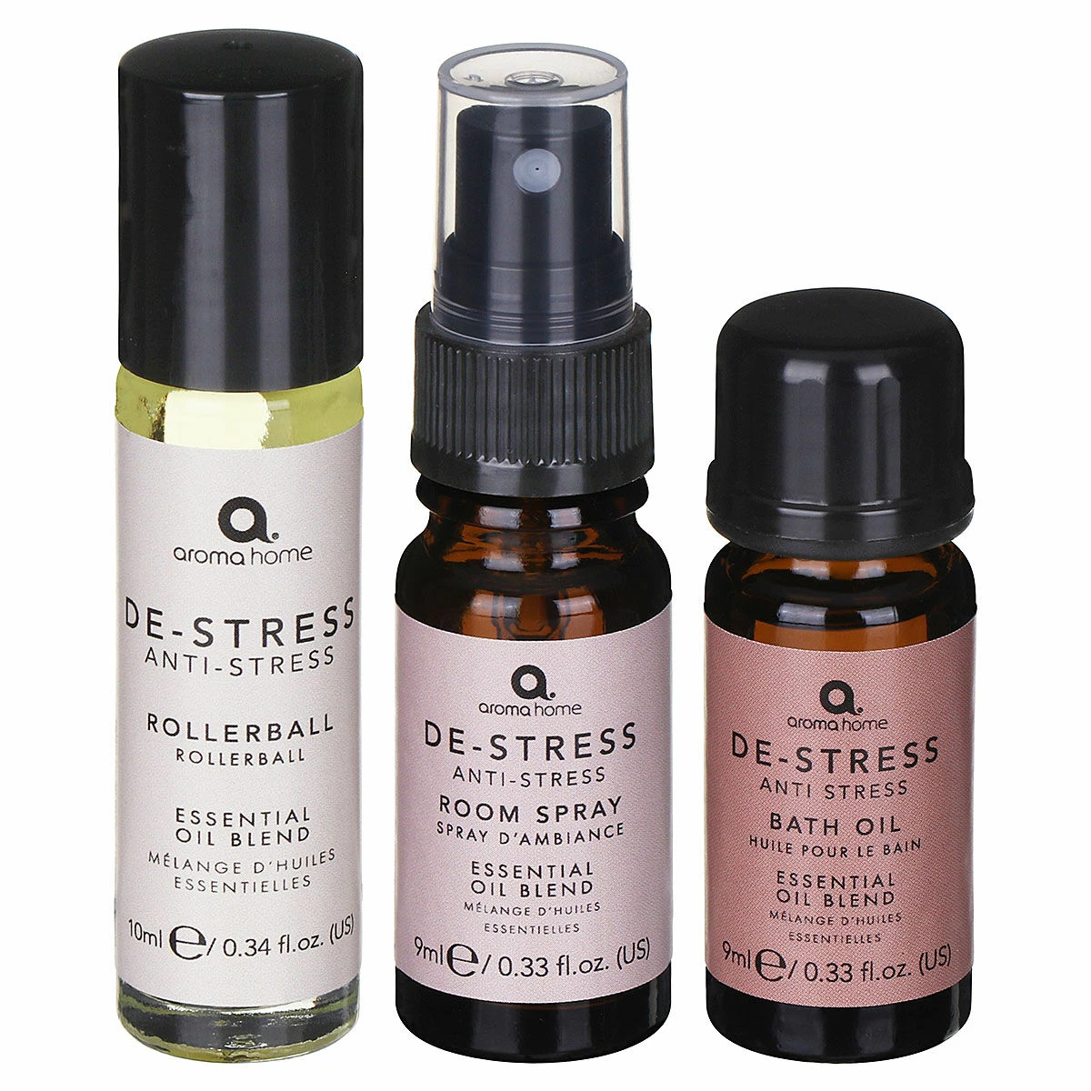 Relax and unwind with this Aroma Home therapy set of three essential oils designed to help you de-stress and relax. De-Stress is a blend of pure essential oils, and it includes an orange, patchouli and ylang ylang essential oil blend which all add freshness to your home and will help you relax and separate yourself from the stress of everyday life.