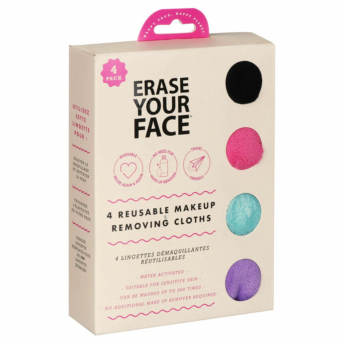 Erase Your Face Pack of Four Reusable Makeup Removing Cloths
