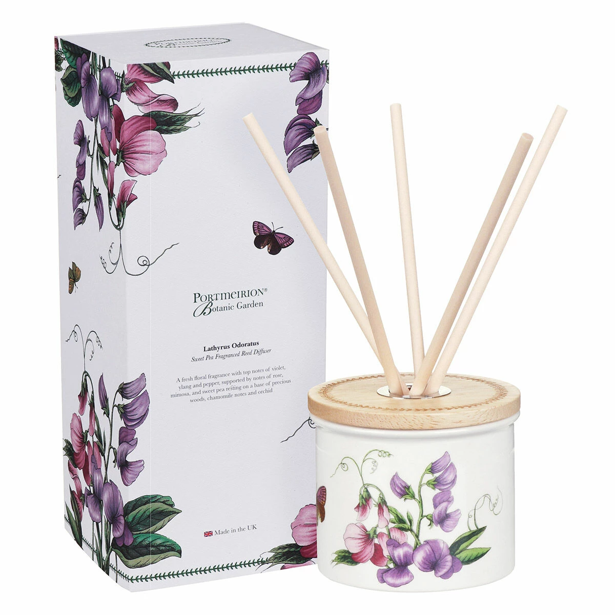 Fragrance your home with the gorgeous scent of sweet peas in this ceramic reed diffuser, a part of the Botanic Garden collection from Wax Lyrical.