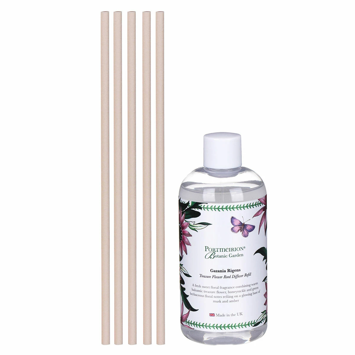 Ideal for adding a fresh sweet floral aroma to any room in your home. This reed diffuser refill features a blend of warm balsamic treasure flower, honeysuckle and green herbaceous floral notes. This all rests on a glowing base of musk and amber. The refill holds 200ml of liquid for you to top up your favourite empty diffuser, keeping your home feeling fresh.