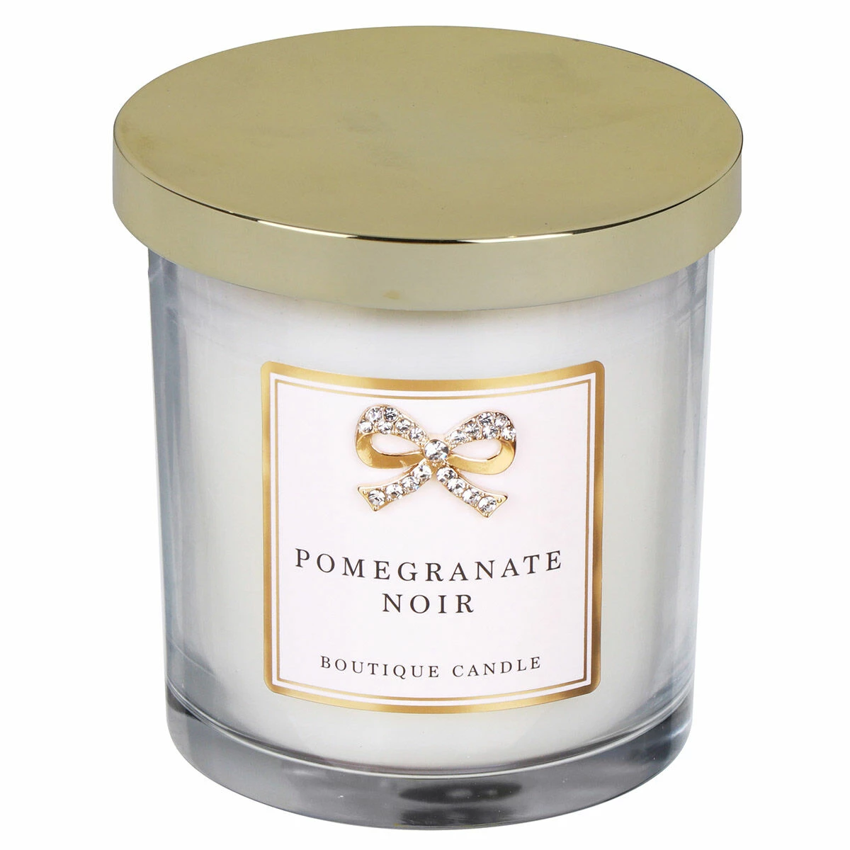 A wonderful concoction of aromas, this stunning glass tumbler candle is perfect for any loved one. The crisp white wax is scented with the wonderful pomegranate noir fragrance. This boutique candle has approximately 25 hours of burn time and evokes a sense of serene as the fragrance infuses your house with its beautiful scent.