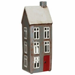 Shudehill Village Pottery Tall Dark Grey House Tealight Holder