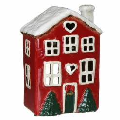 Shudehill Village Pottery Large Red Christmas House Tealight Holder