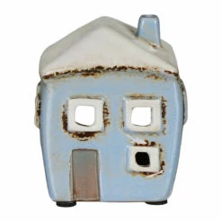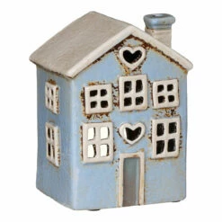 Shudehill Village Pottery Small Light Blue Heart House Tealight Holder