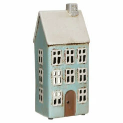 Shudehill Village Pottery Tall Light Blue House Tealight Holder