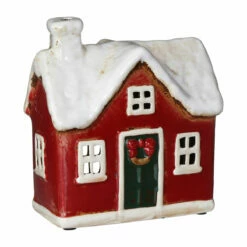 Shudehill Village Pottery Traditional Red Christmas House Tealight Holder