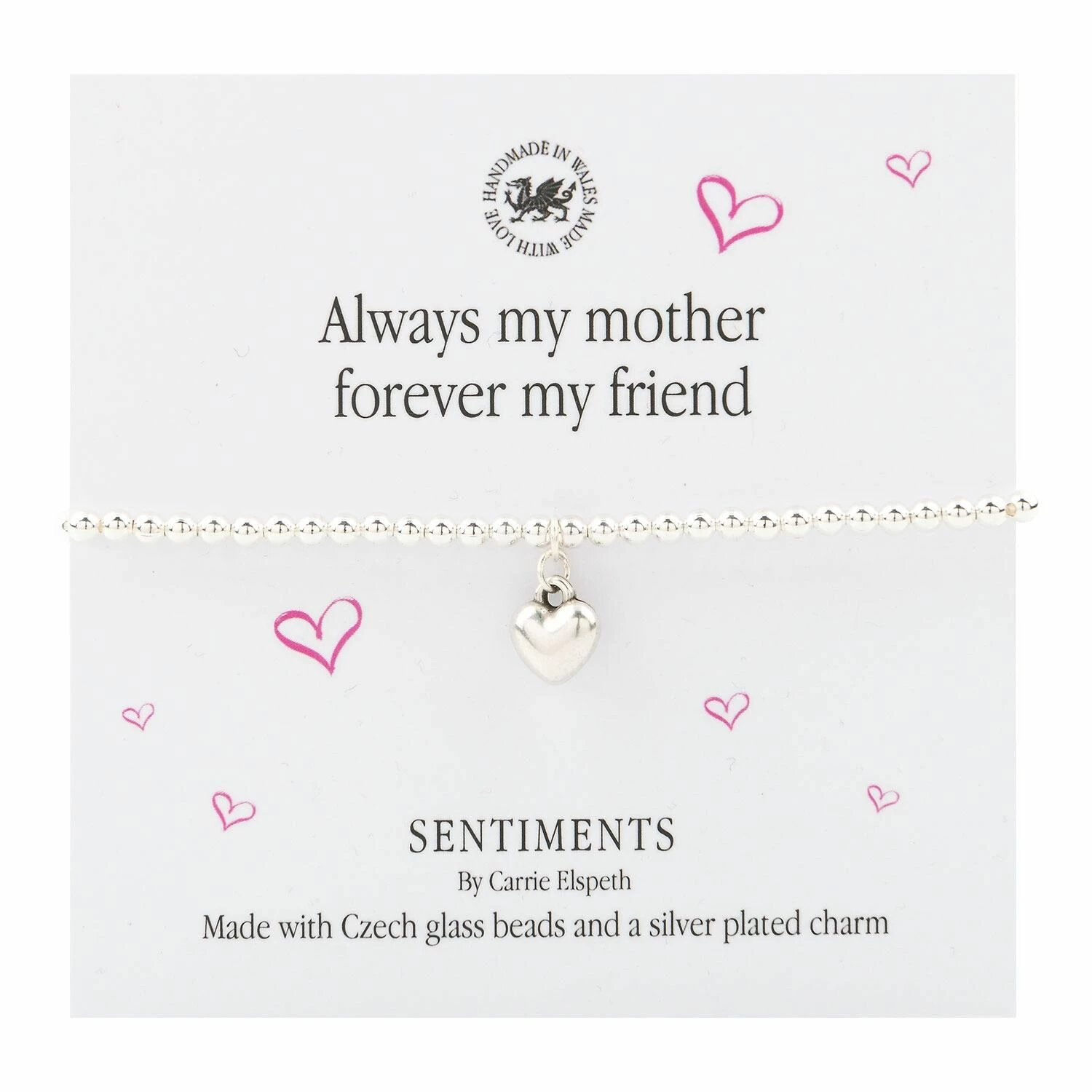 A ‘sentiment’ card is included with the bracelet, with the message: ‘Always my mother, Forever my friend’. This bracelet would make a beautiful and treasured gift for your mum on Mother’s Day, her birthday or at Christmas; show her how much you care!