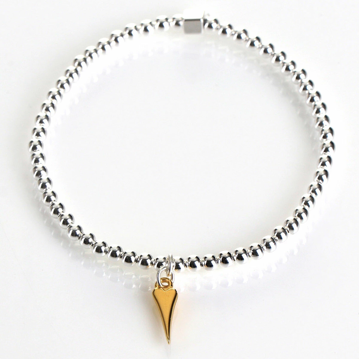 Celebrate a special friendship with this utterly charming bracelet from Carrie Elspeth. The bracelet features silver beads and an adorable heart shaped charm that is gold-plated and shimmers in the light. The bracelet stretches to fit over your wrist allowing it to be put on and taken off with ease.