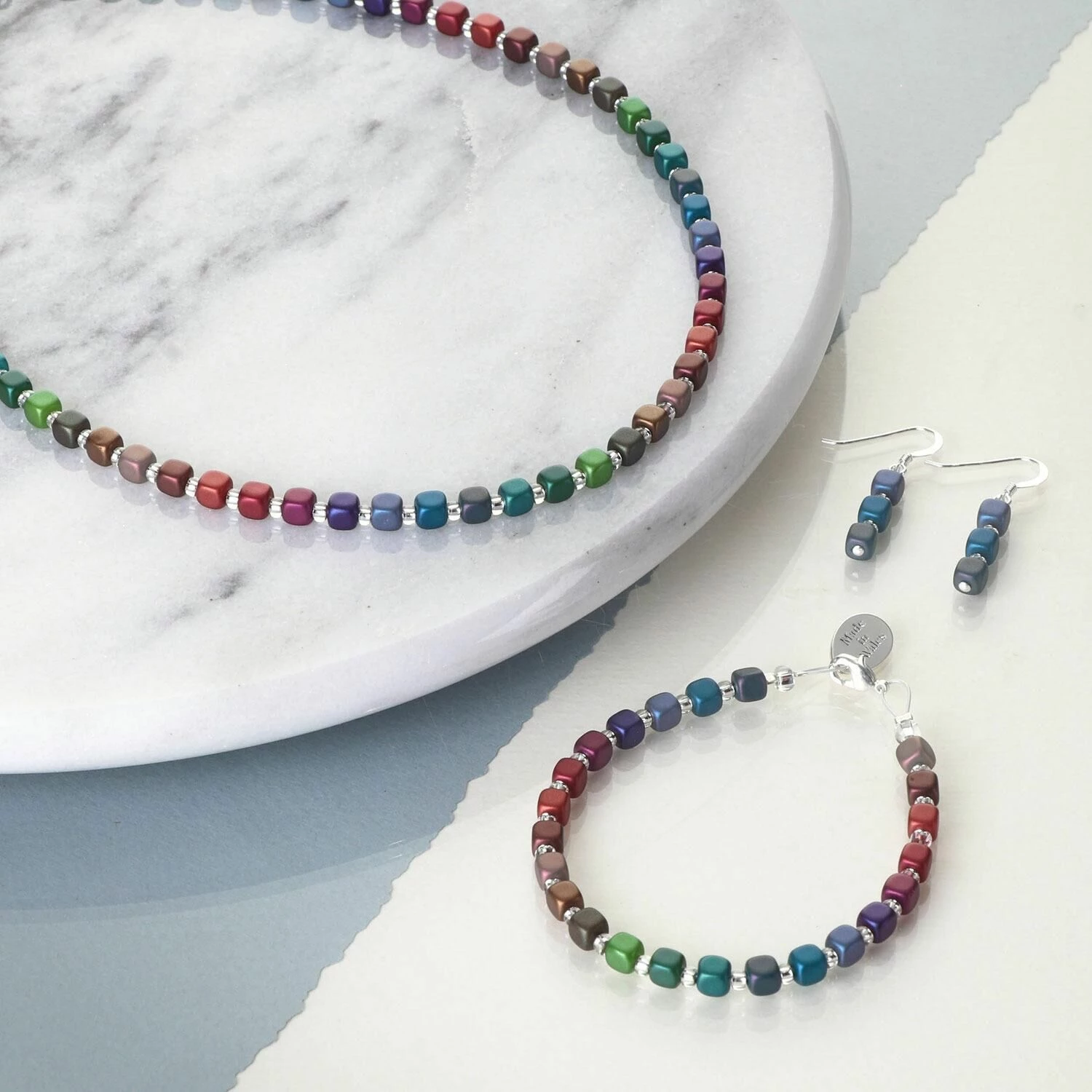 If you are a true Carrie Elspeth fan you will recognise these beautiful satin cubes from the Czech Republic. They are the smaller version of our best seller Radiant Deluxe – just as striking but with a more delicate look. A full rainbow of colour and a real favourite in the studio, another best seller no doubt!