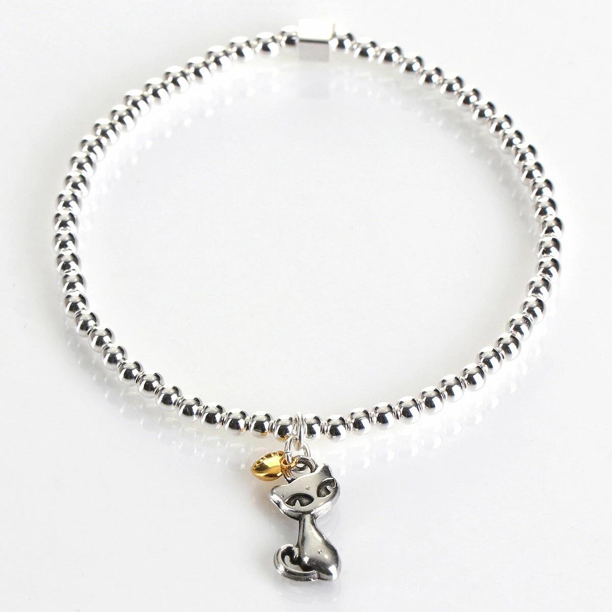 This utterly charming ‘cat mum’ bracelet from Carrie Elspeth is a lovely gift from the cat to their mum, because pets are children too after all! The bracelet features silver beads, an adorable cat charm that is silver-plated, and a smaller heart shaped charm that is gold-plated and shimmers in the light. The bracelet stretches to fit over your wrist allowing it to be put on and taken off with ease.