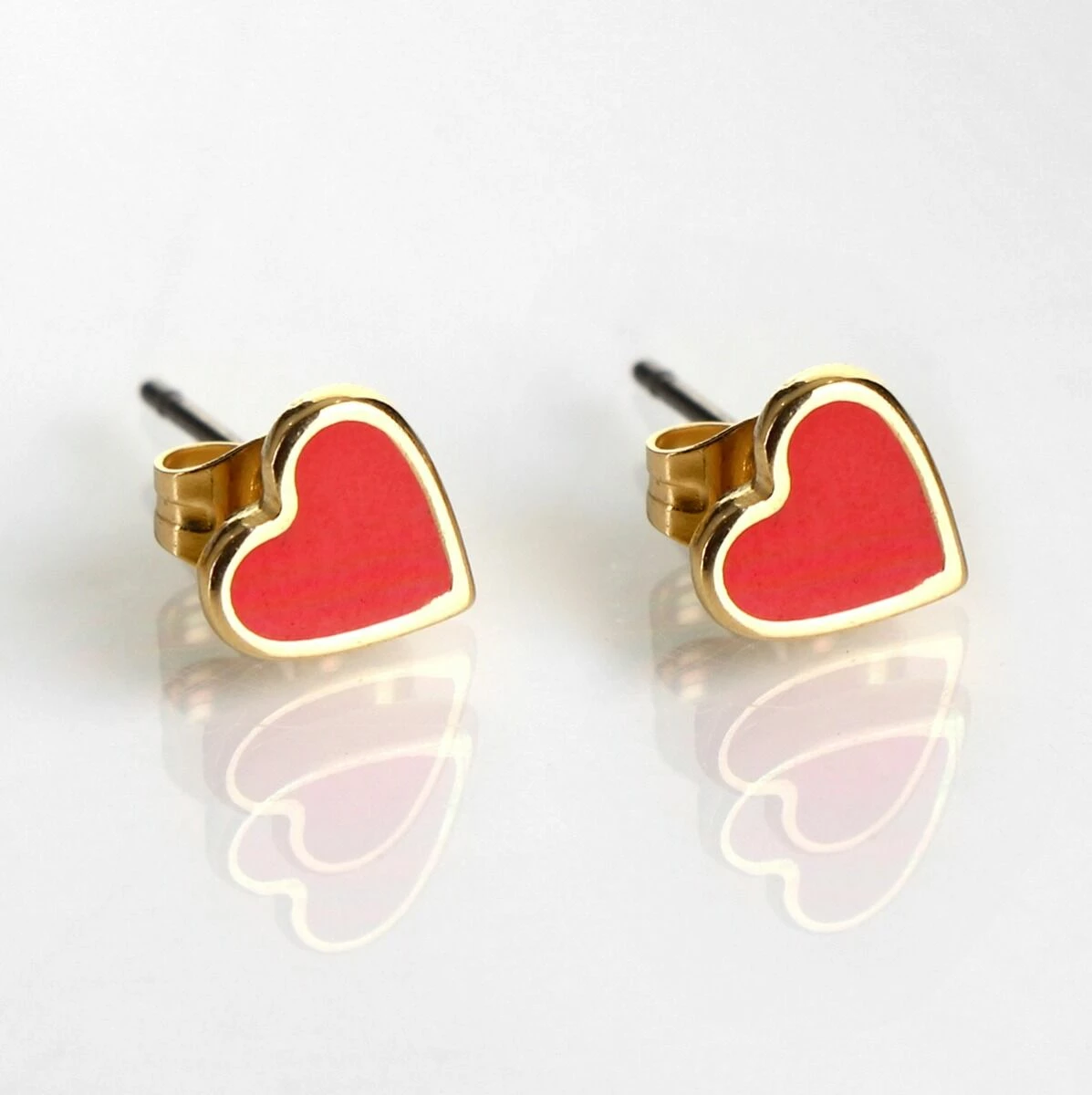 Carrie Elspeth Fire Red Enamel Heart Stud Earrings