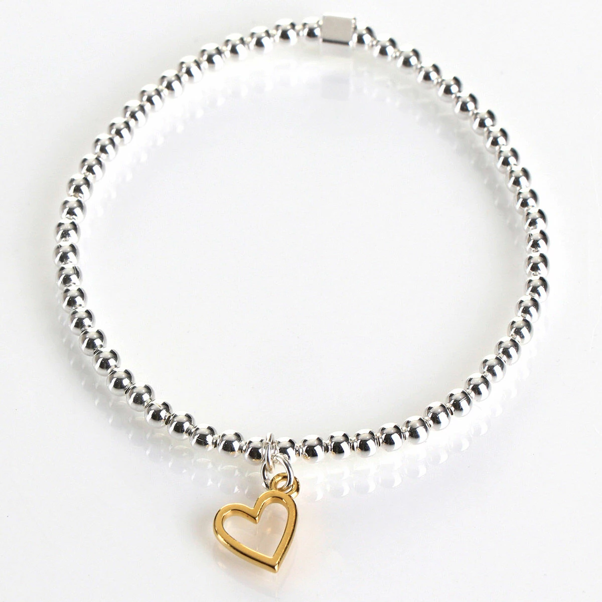 This utterly charming bracelet from Carrie Elspeth celebrates the special bond between a sibling and their sister. The bracelet features silver beads and an adorable heart shaped charm that is gold-plated and shimmers in the light. The bracelet stretches to fit over your wrist allowing it to be put on and taken off with ease.