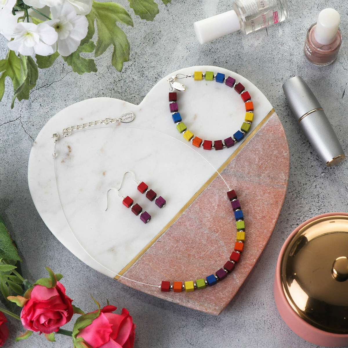 Carrie Elspeth Rainbow Wooden Cubes Bracelet