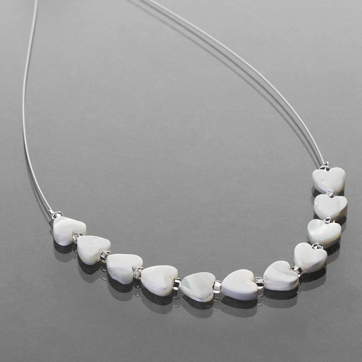 Add some sophisticated charm to your jewellery collection with this beautiful necklace from Carrie Elspeth. A delicate and stunning accessory perfect for day, night, or special occasion! It’s made from dainty shell heart beads which sit at the front of the thin piece of wire. Each bead is interspersed with a clear spacer bead which creates a delicate and stylish look.