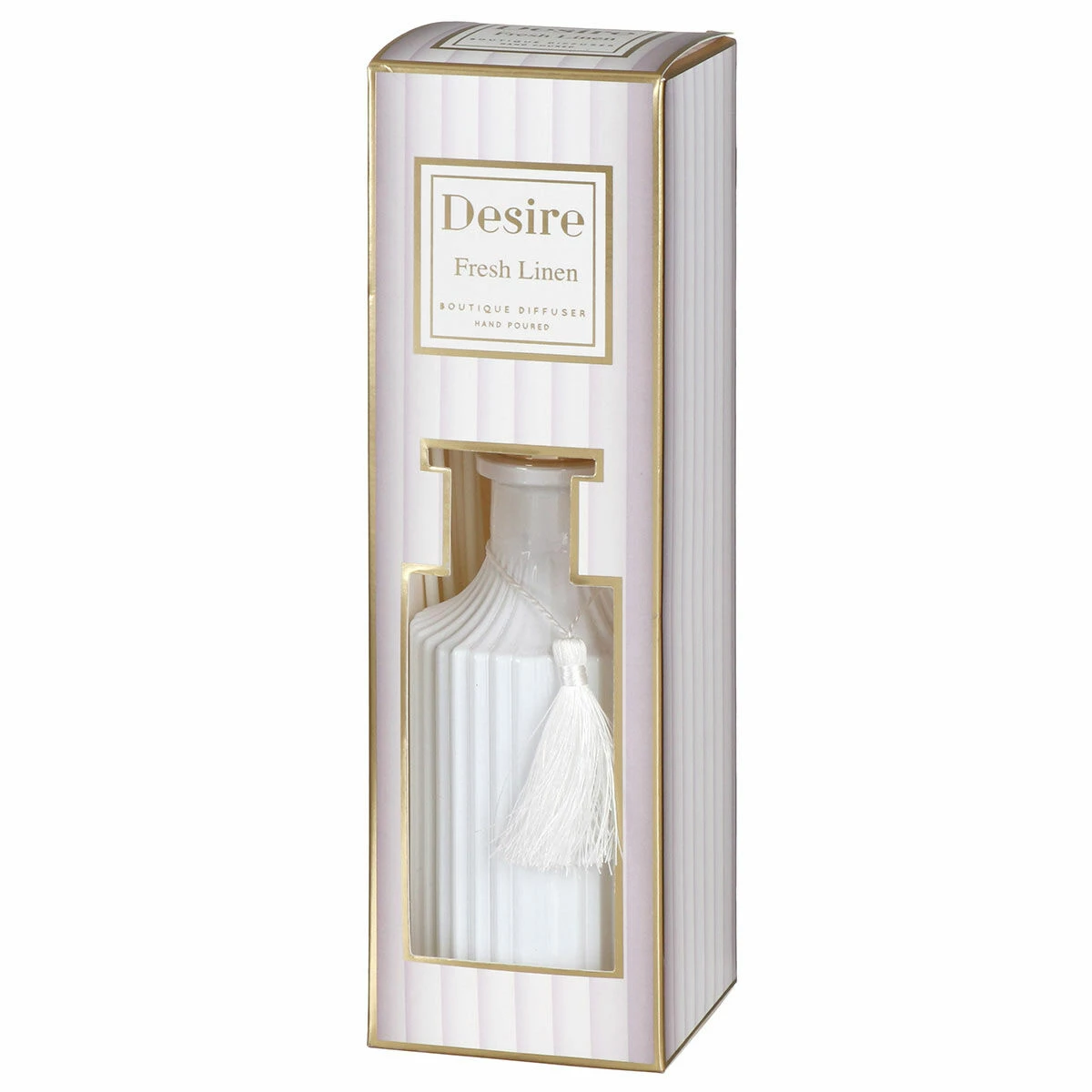 A wonderful concoction of aromas, this stunning white reed diffuser contains 250ml of Fresh Linen fragrance. This delightful diffuser is hand poured and evokes a sense of calm as the fragrance infuses your house with its deep scent.