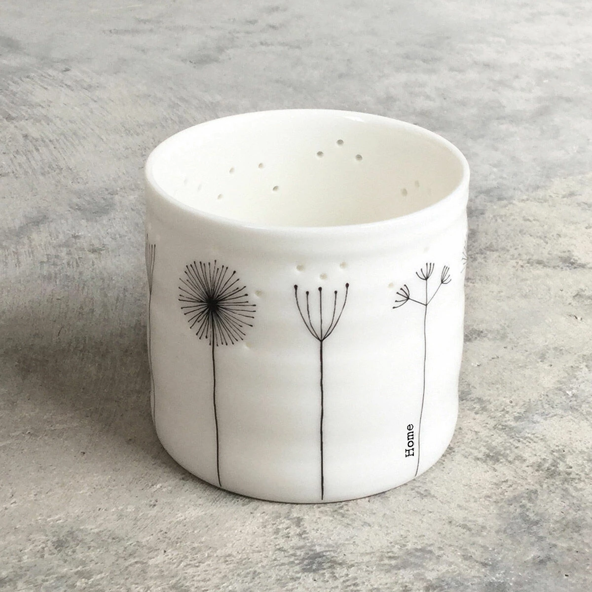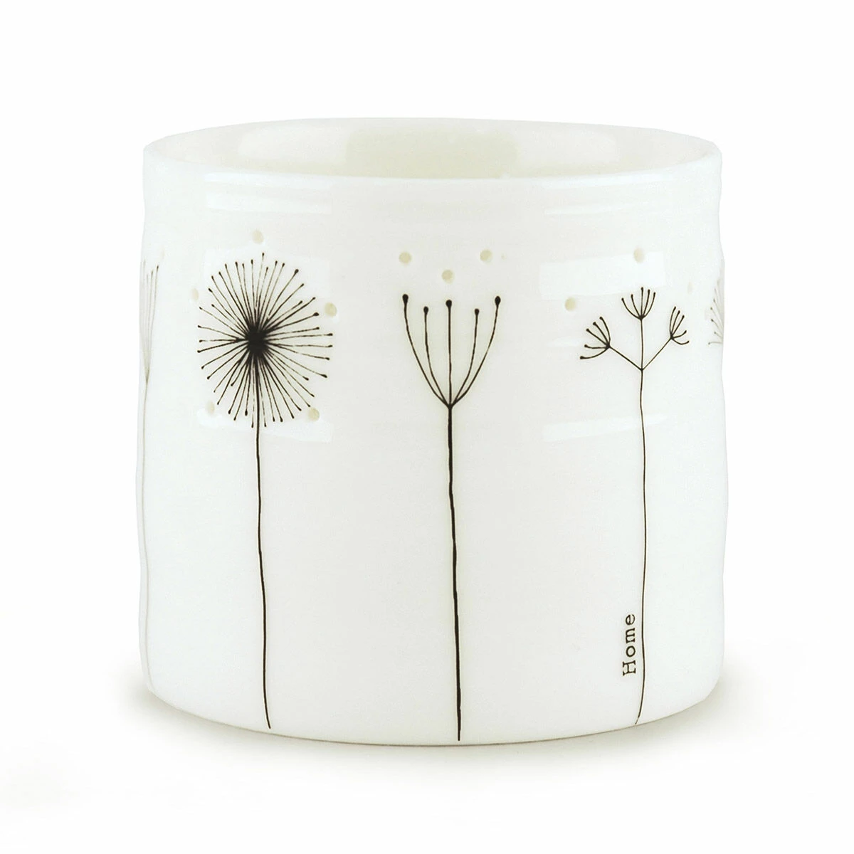A simple illustration of sprigs of flowers line the surface and the word ‘Home’ is written vertically on the side. With small holes in the side, it means that the soft warm glow of the tealight will shine through. This decorative candle has an artisan feel to it and it can be used to create a charming ambience wherever you choose to display it.
