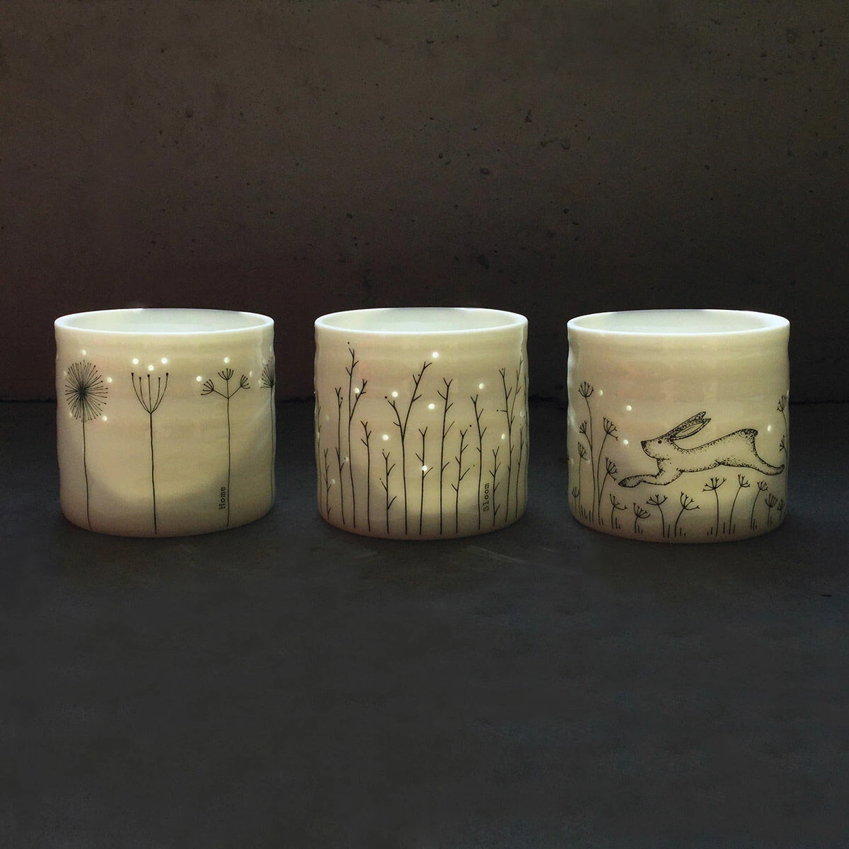 This gorgeous tea light holder is beautifully produced, with the ribbing from the potter’s wheel visible in the surface. It is white in colour, with a clear gaze, offering a subtle yet beautiful means of adding warming glow throughout any room of your home.