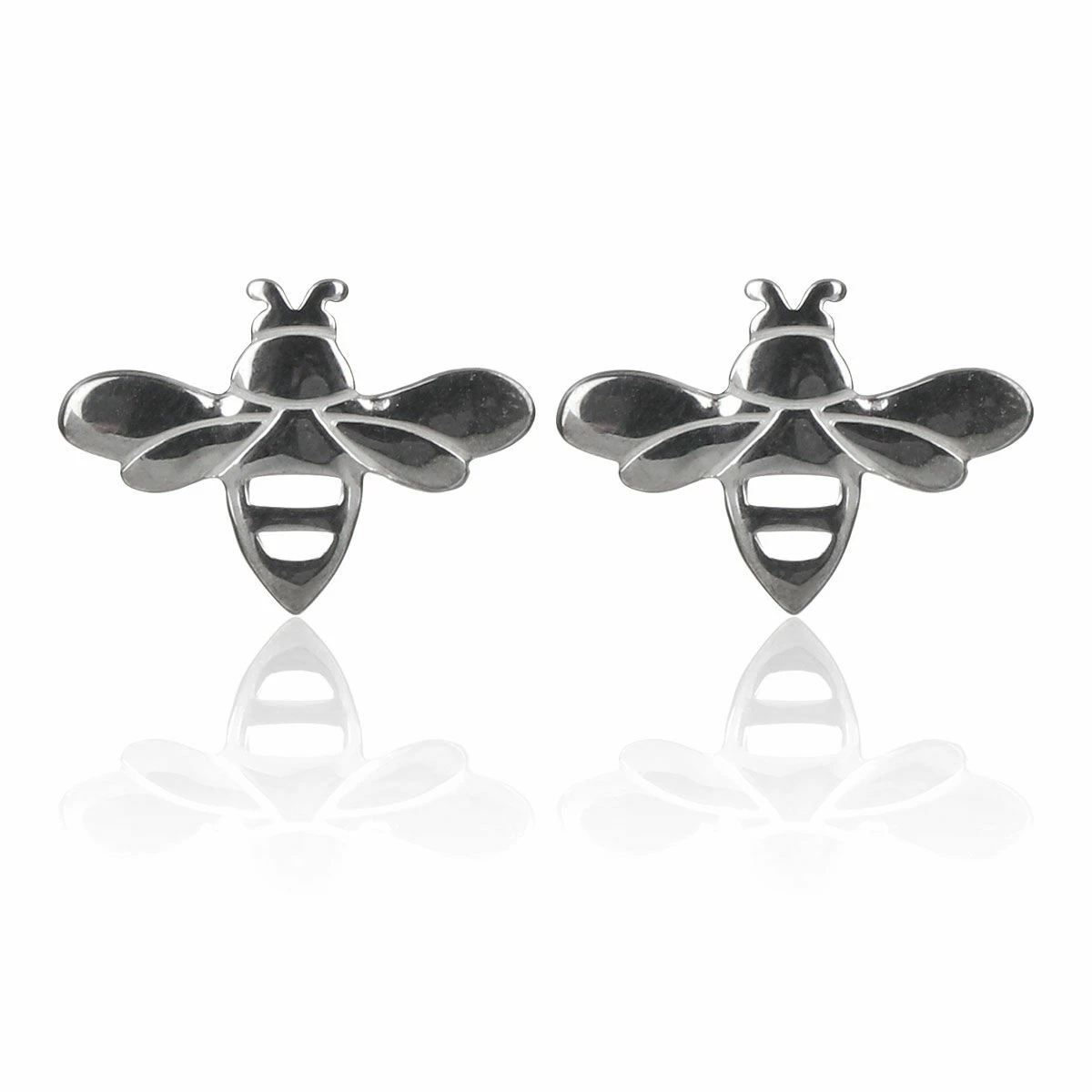 These delicate bee stud earrings from the Elements Silver Collection make a gorgeous gift. They are made from sterling silver that have been shaped as little bees with embossed wings and line details. The reverse feature a butterfly clasp which allows the earring to sit comfortably in your ear. These earrings come presented in an attractive pale green gift box.