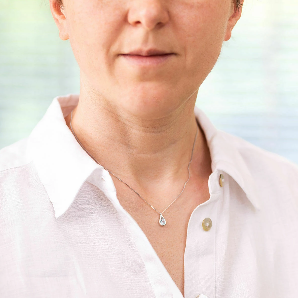 Elements Blue Topaz Teardrop Pendant Silver Necklace