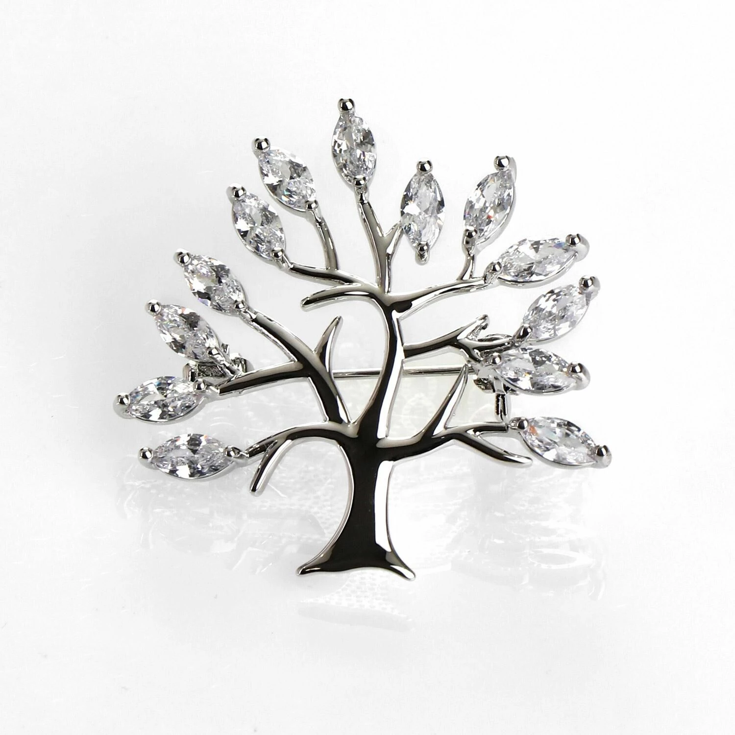 An elegant silver tree is adorned with sparkling clear crystals which represent its leaves. The Tree Of Life represents a fresh start, a bright future, good health, and positive energy, making this gorgeous brooch great to give as a gift of encouragement and support.