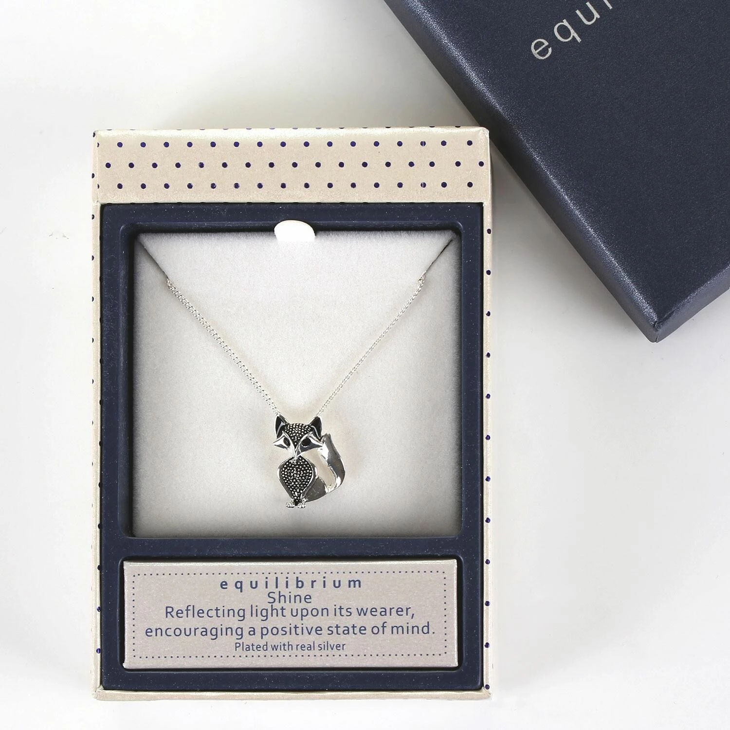 An elegant fox is suspended from the chain of this necklace from the Equilibrium jewellery range. It is the perfect addition to a day or evening outfit and makes a lovely gift.