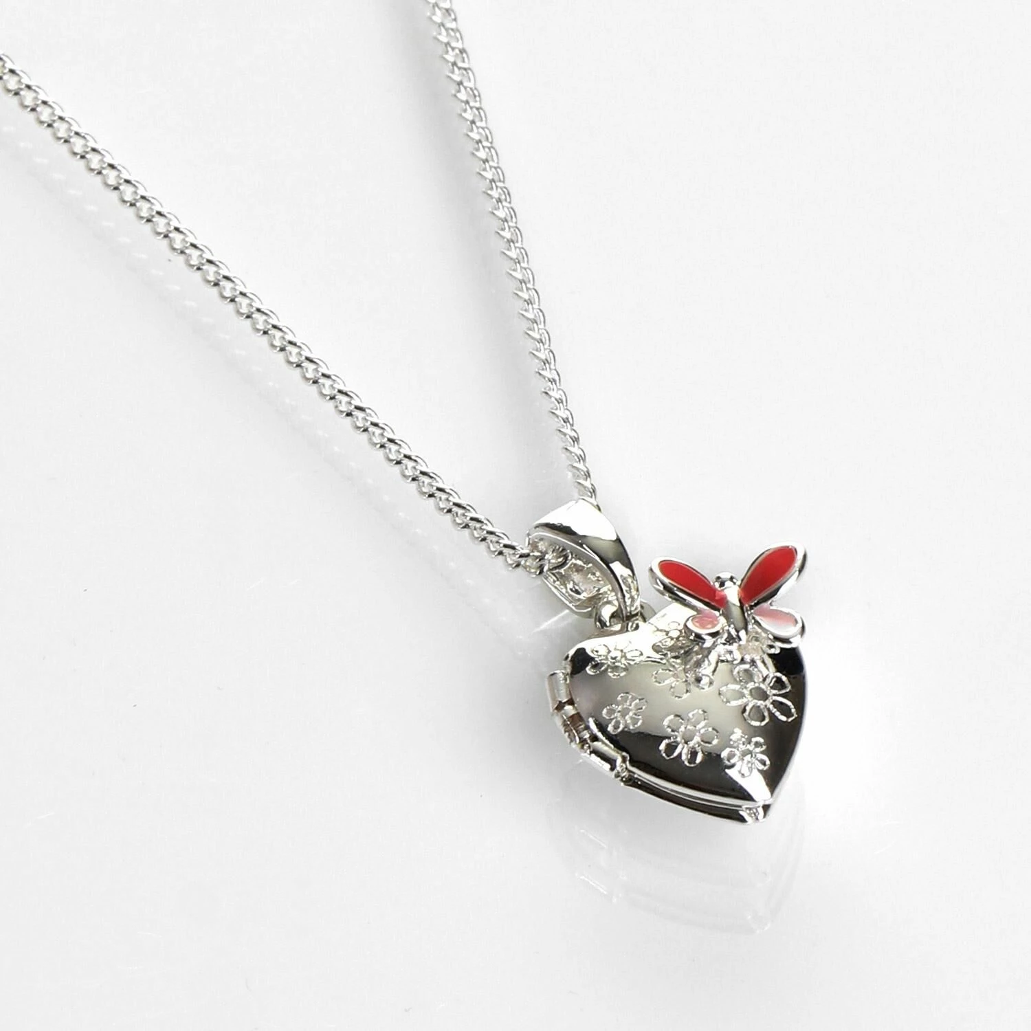 Equilibrium Girls Silver Plated Butterfly Heart-Shaped Locket