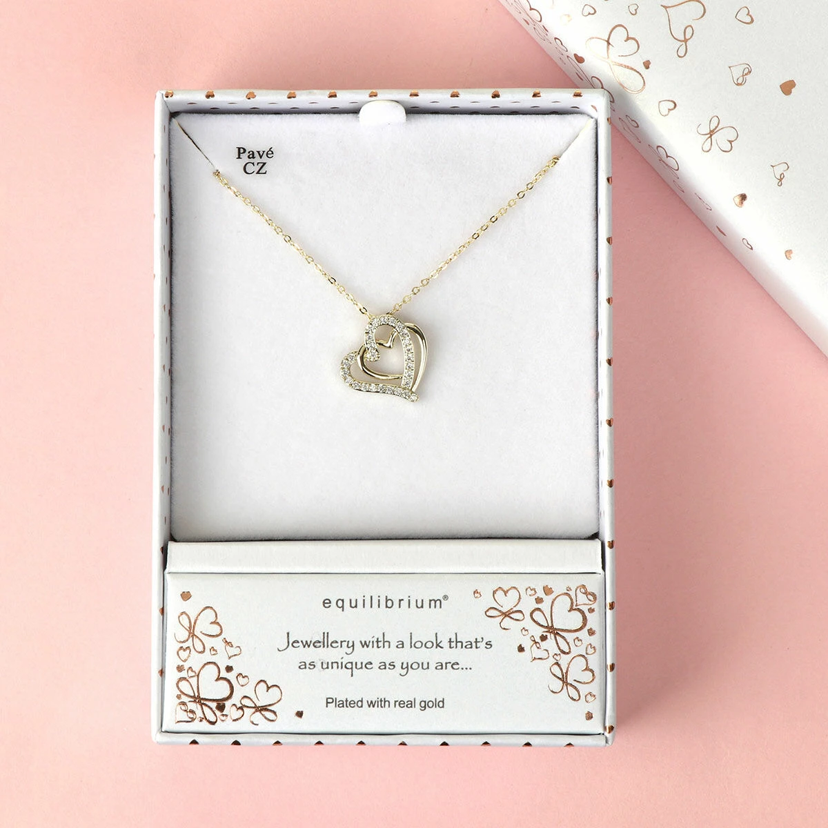 The gold-plated hearts necklace comes presented in an Equilibrium gift box with the words ‘Jewellery with a look that’s as unique as you are…’. A gorgeous accessory to give as a gift for a friend or relative, great for a birthday, Christmas or just to show someone you care!