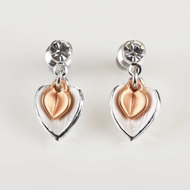Equilibrium Matt Silver/ Rose Gold Plated Heart Earrings