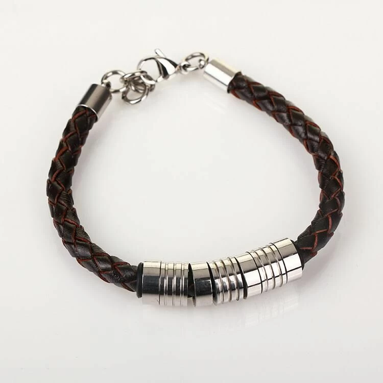 Perfect for the modern and fashion conscious man, this genuine leather and stainless steel bracelet is sure to add style to any outfit, casual or smart.