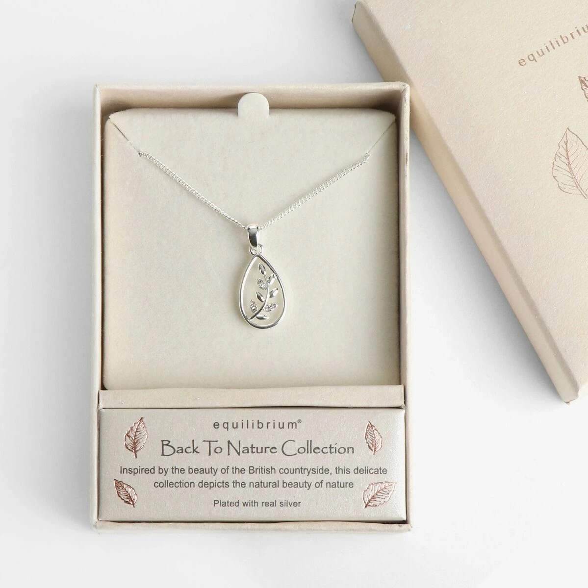 This stunning silver plated necklace from Equilibrium is perfect for any nature lover who wants to add a touch of class and elegance to their outfit.