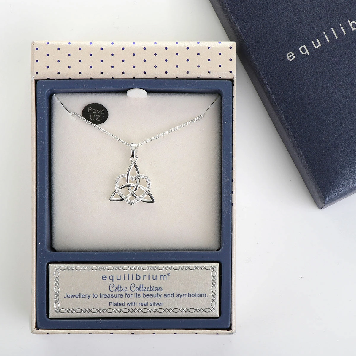 Equilibrium Silver Plated Celtic Knot Diamante Heart Necklace