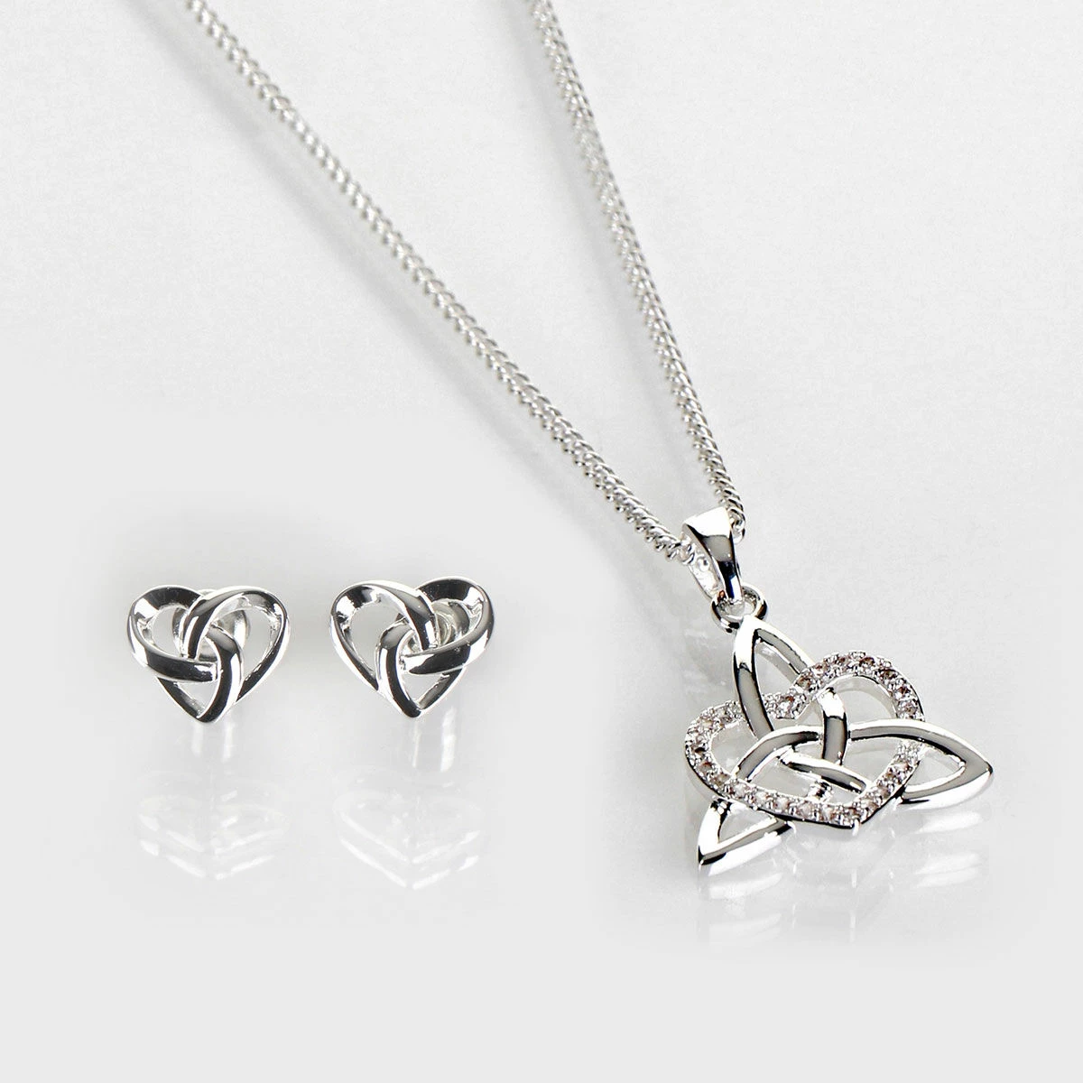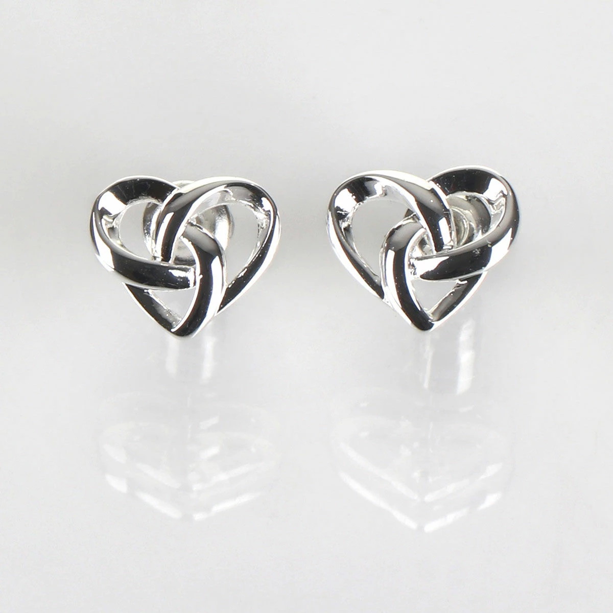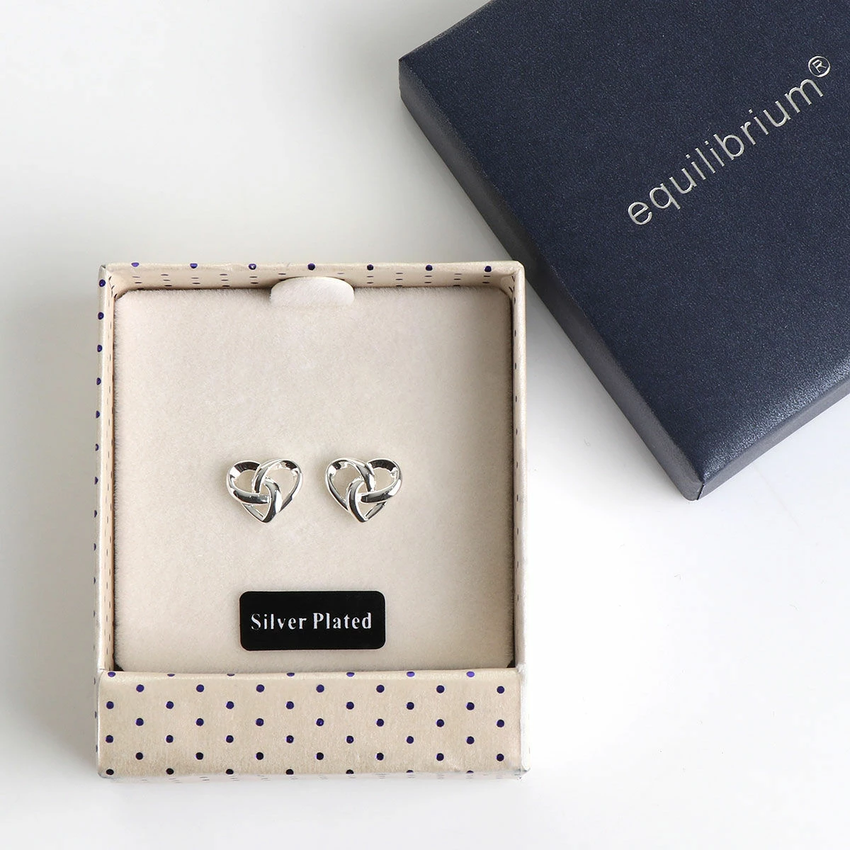 Equilibrium Silver Plated Celtic Knotted Heart Stud Earrings