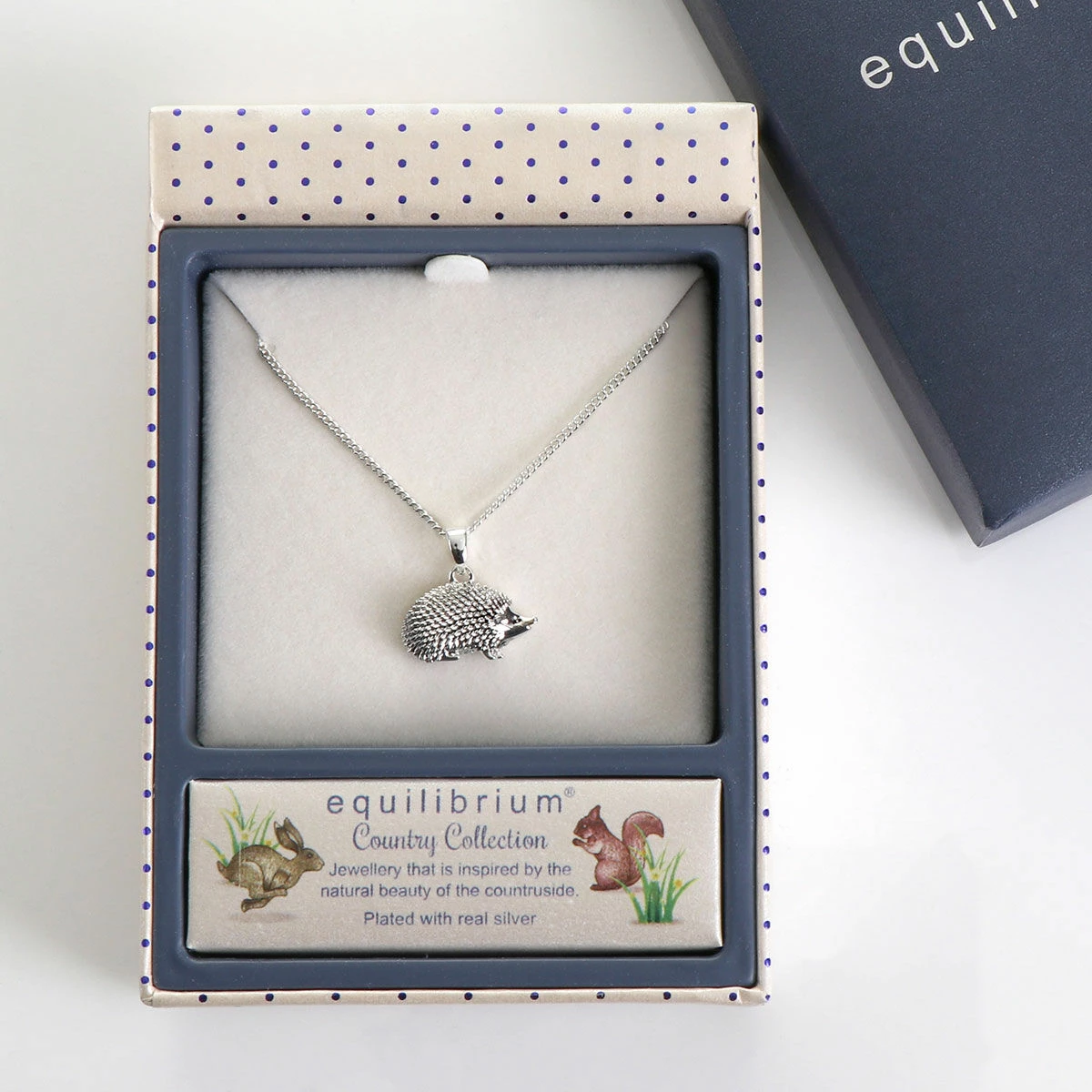 This beautiful hedgehog necklace is presented in an Equilibrium gift box with the phrase ‘Country Collection, Jewellery that is inspired by the natural beauty of the countryside.’ A beautiful piece of jewellery to complete any outfit whether you’re going to work or doing the school run! A wonderful accessory to give as a gift for Christmas or for a birthday to any loved one who has a love for hedgehogs.