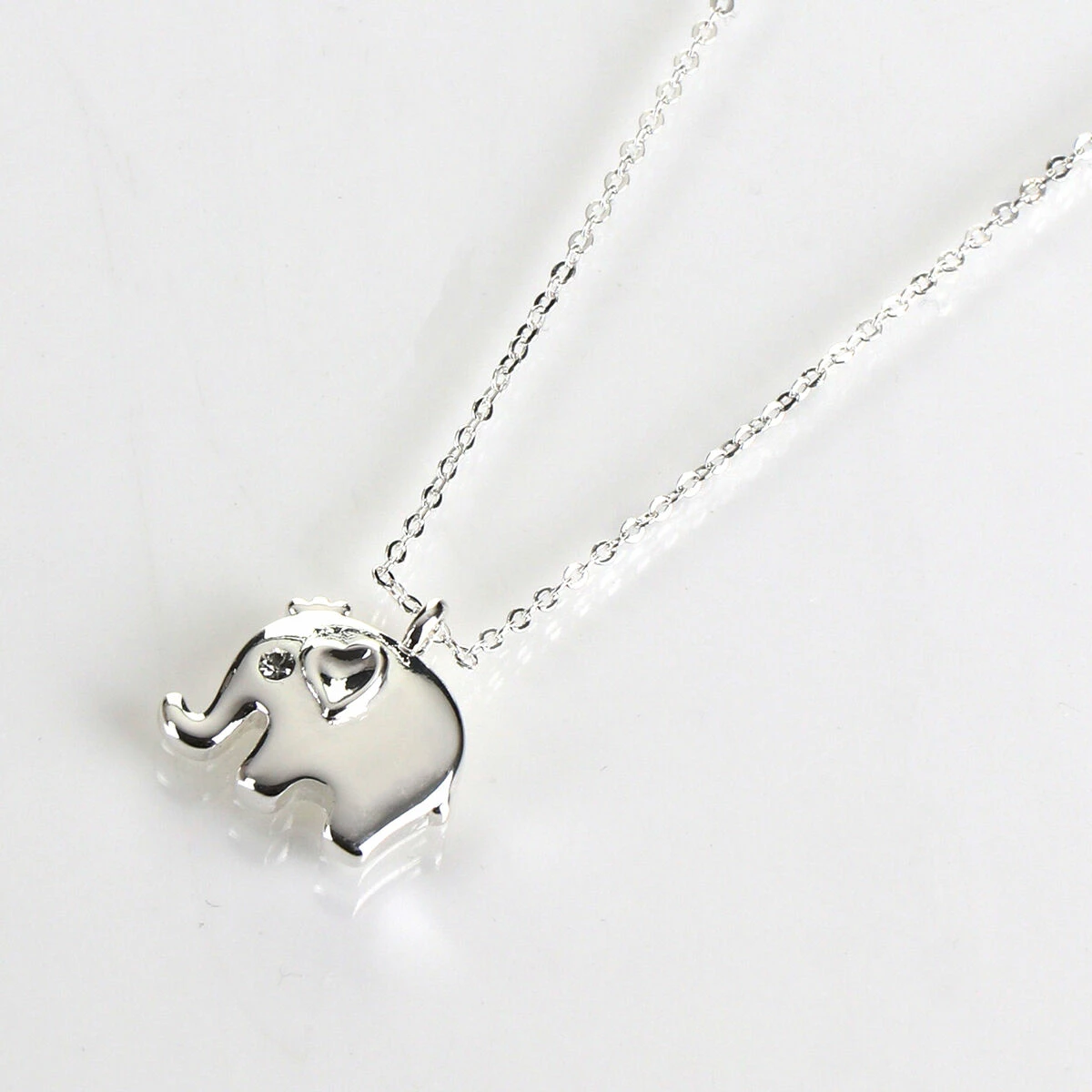 Complete any outfit with a stunning piece of jewellery. This gorgeous little silver-plated elephant features a smooth finish with little trunk and heart shaped ear, it even has a little shimmering diamante eye which twinkles in the light. The cute little elephant pendant sits on a silver-plated chain, 48cm in length with a hook and loop clasp.
