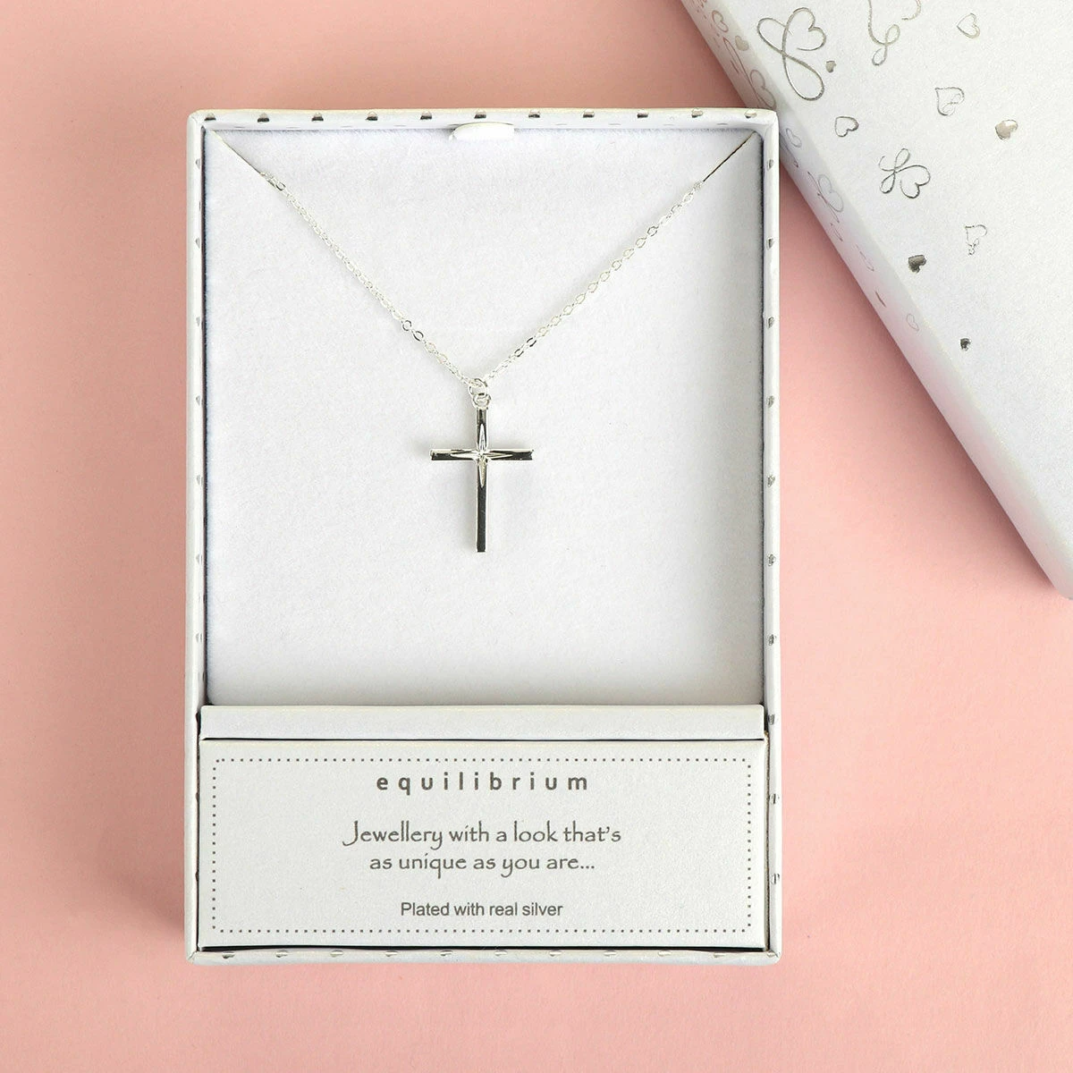 The unique diamond cut cross necklace comes beautifully presented in an Equilibrium branded gift box with the phrase ‘Jewellery with a look that’s as unique as you are…’. This sentimental piece of jewellery will make a wonderful gift for a friend or loved one, perfect for a Baptism or Confirmation Day.