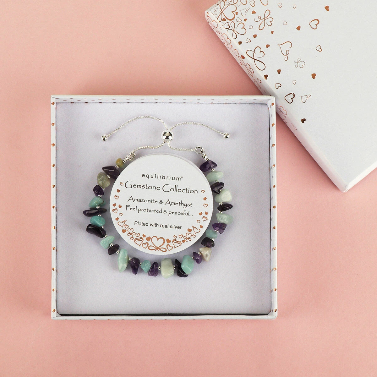 Equilibrium Silver Plated Gemstone Amazonite and Amethyst Friendship Bracelet