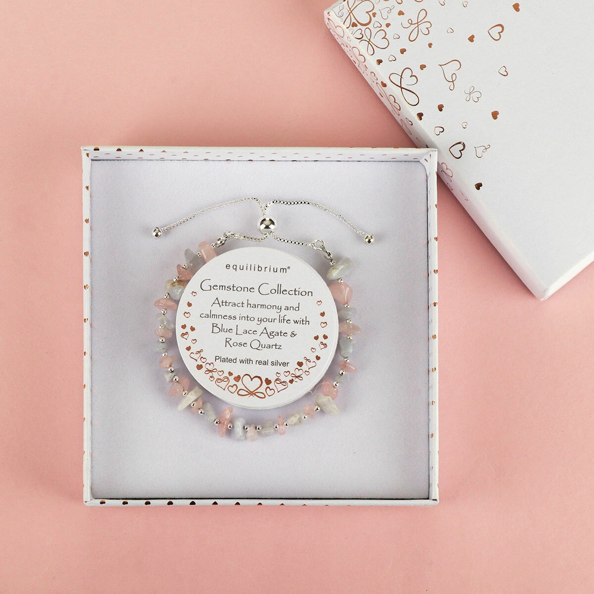 Equilibrium Silver Plated Gemstone Blue Lace Agate and Rose Quartz Friendship Bracelet