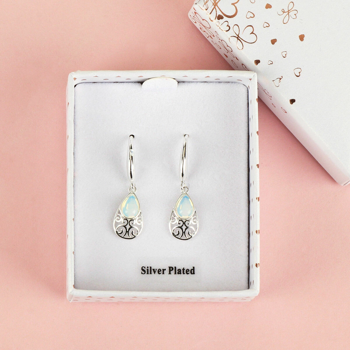 This stunning pair of silver-plated drop earrings from the Moonstone Magic Collection by Equilibrium is the perfect finishing touch to any outfit and would make a wonderful birthday or Christmas gift!