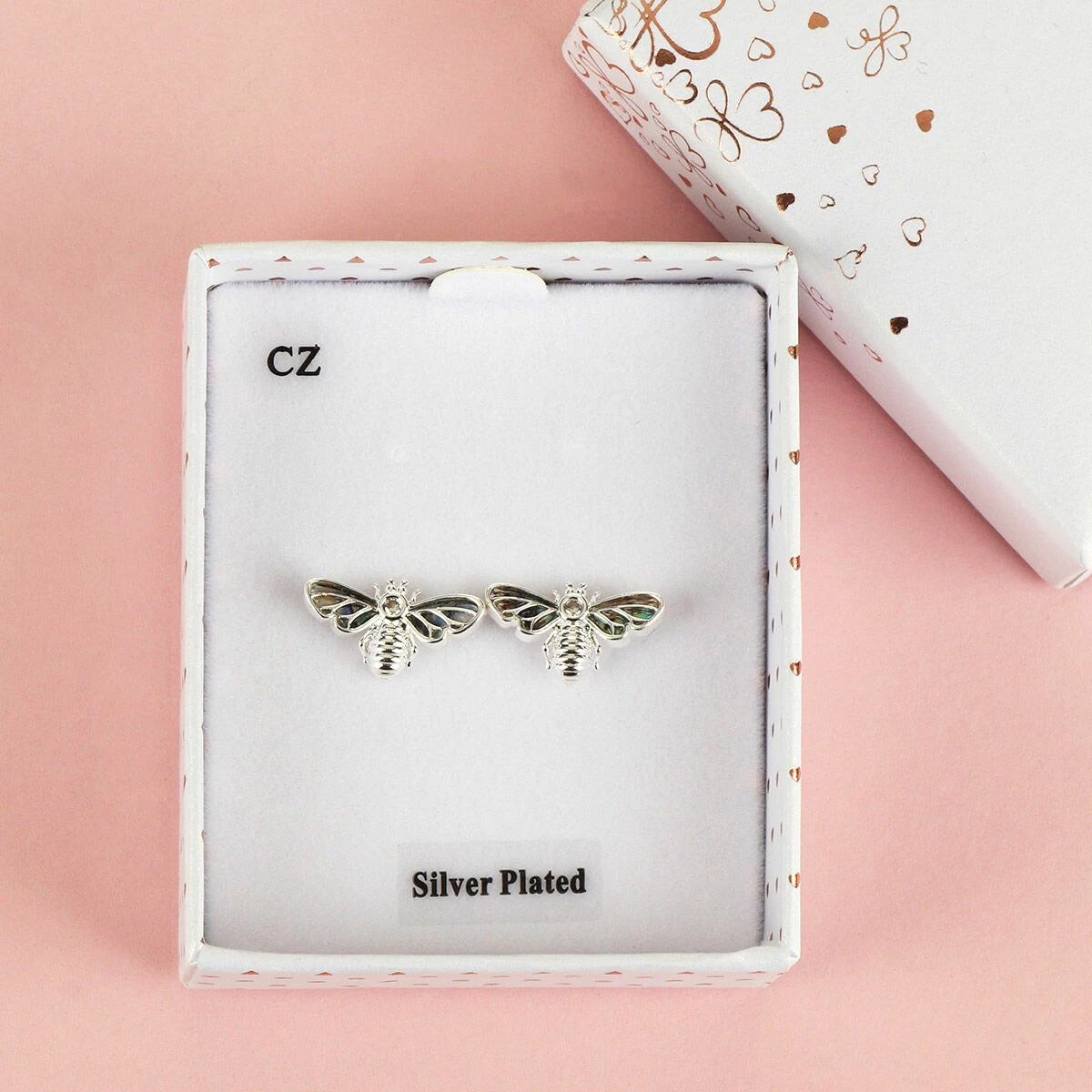 Equilibrium Silver Plated Paua Shell Bee Stud Earrings