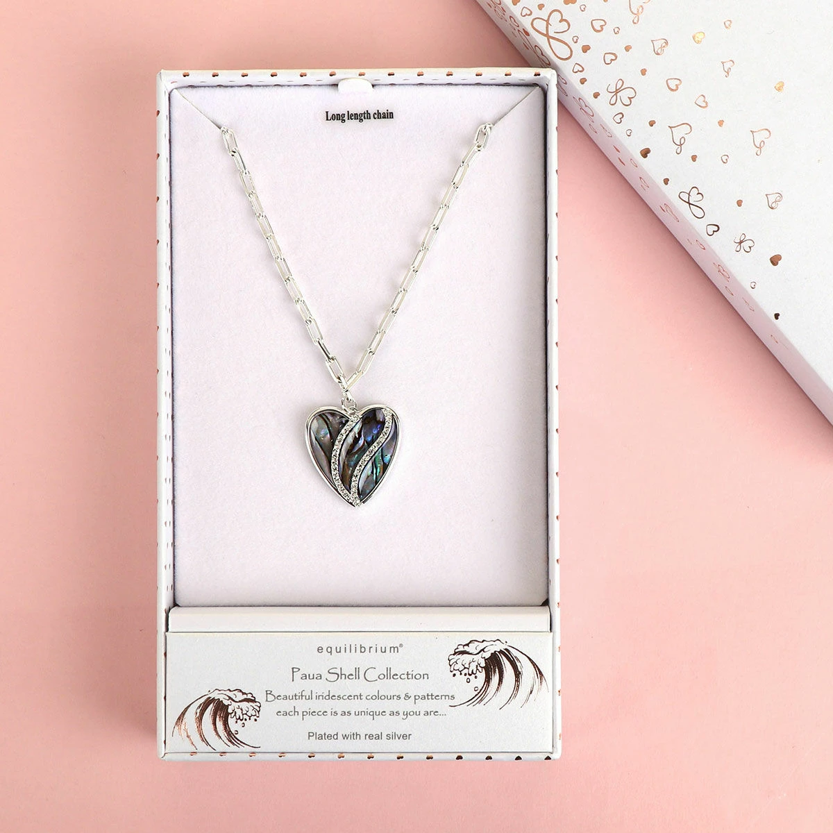 Equilibrium Silver Plated Paua Shell Sparkle Heart Necklace