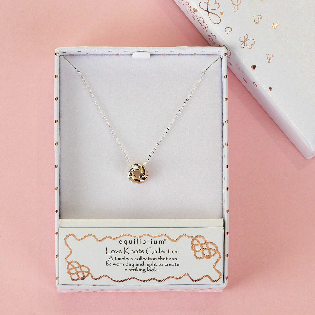 This three tone smooth love necklace comes presented in an Equilibrium gift box with the words Love Knots Collection ‘A timeless collection that can be worn day and night to create a striking look…’. A beautiful piece of jewellery to give as a gift for a friend or relative, great for a birthday, Christmas or just to show someone you care!