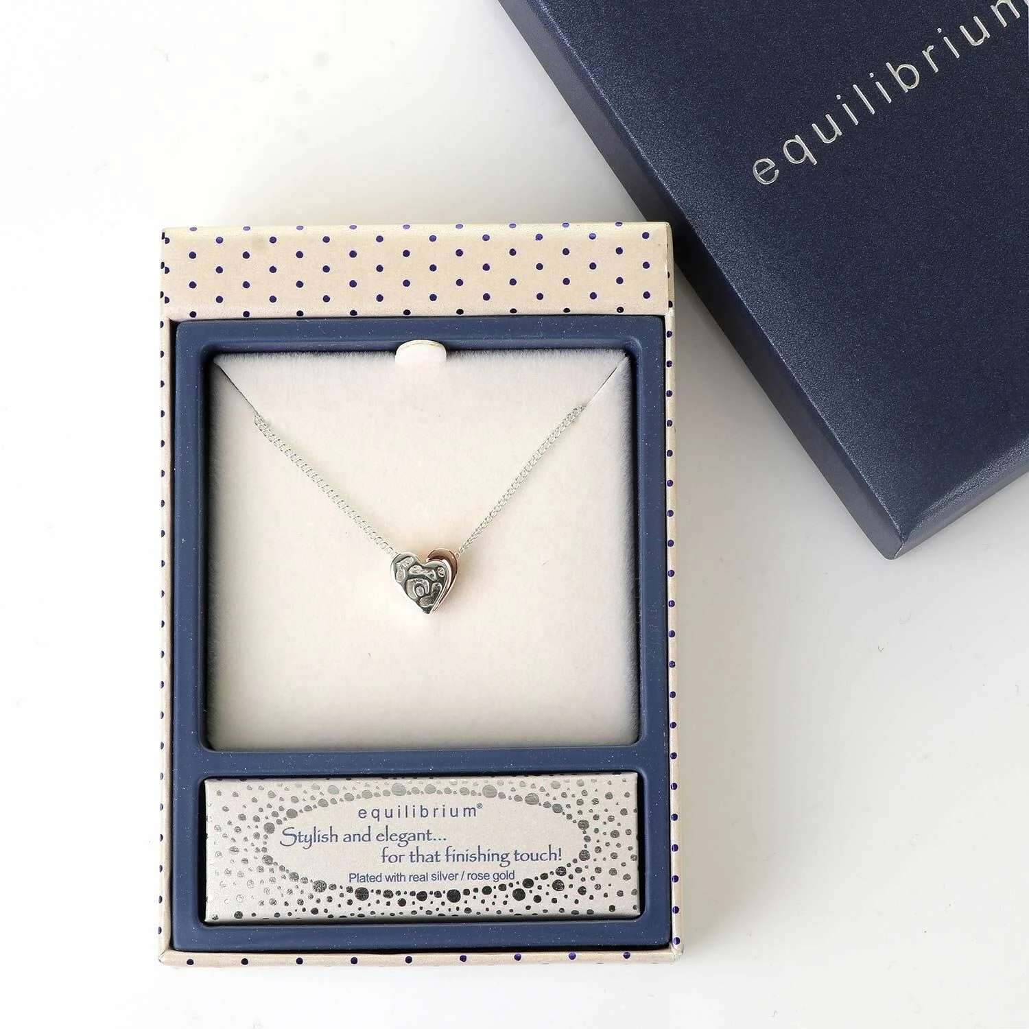Presented in a polka-dot gift box with a blue, Equilibrium branded lid, this lovely necklace makes a wonderful gift for sisters, friends, Mothers and daughters.