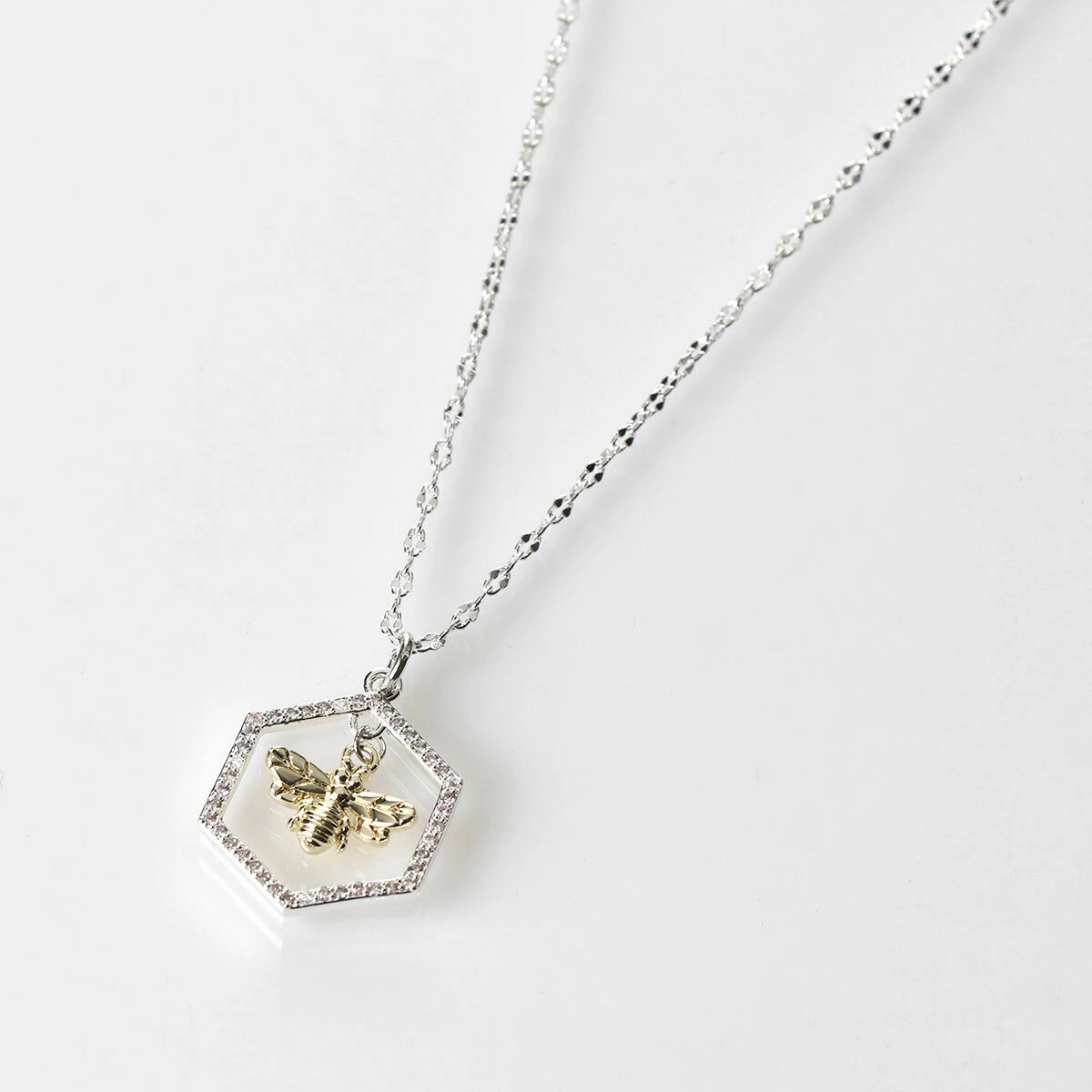 Equilibrium Two Tone Honeybee in Honeycomb Necklace
