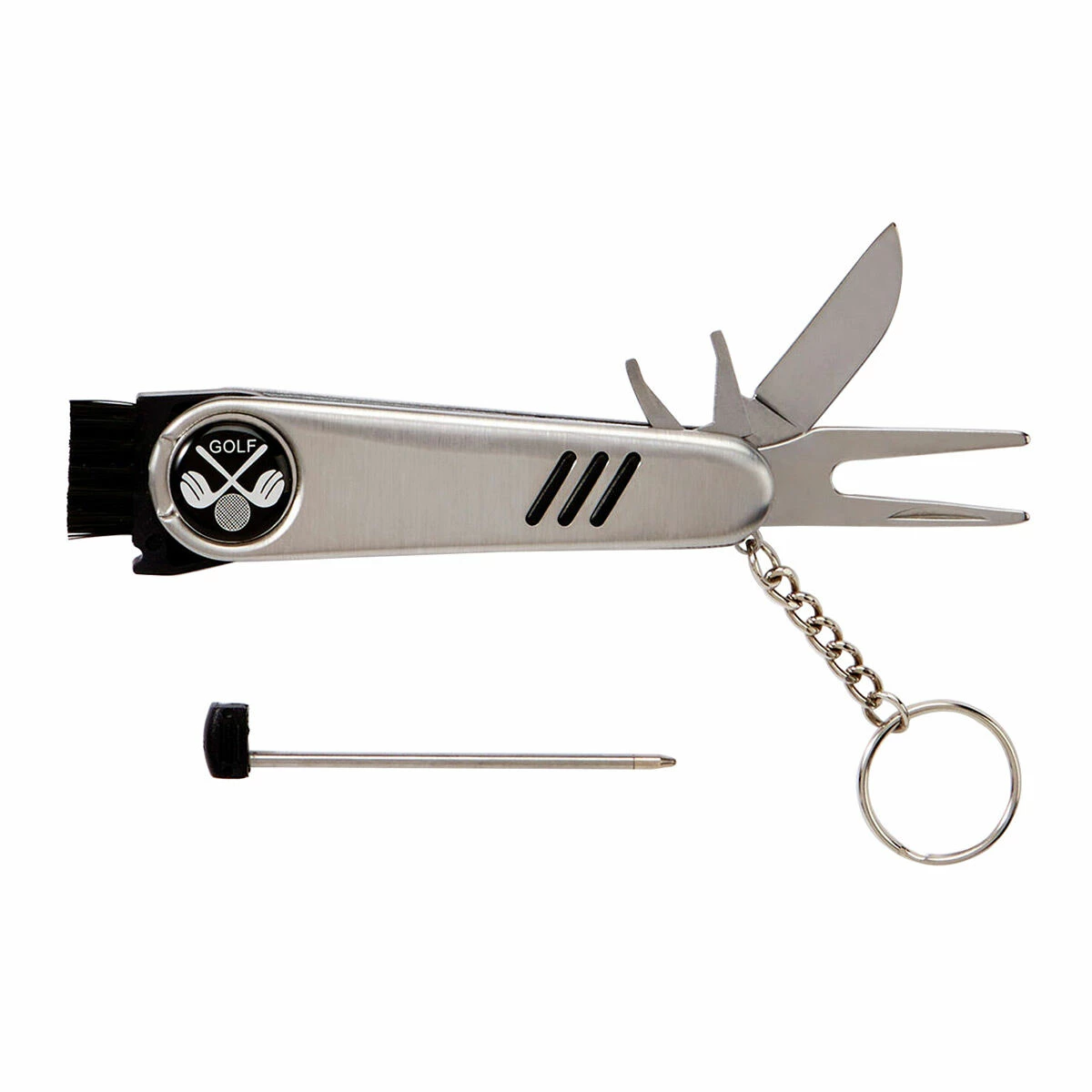 This pocket-marvel features a divot repair, blade, cleat screw, ball marker, club head brush, key ring and mini pen!