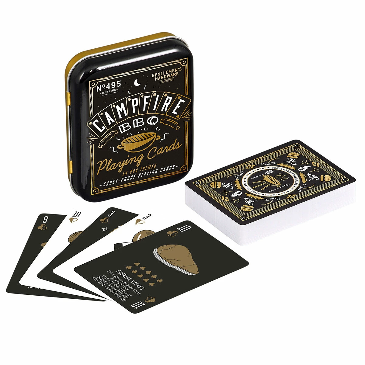 Presented in a sleek black and gold tin, each card has a different BBQ themed food idea, so you’ll never be short of ideas when cooking on the BBQ! The pack contains 52 playing cards and 2 joker cards, meaning all the fun of countless games can be enjoyed.