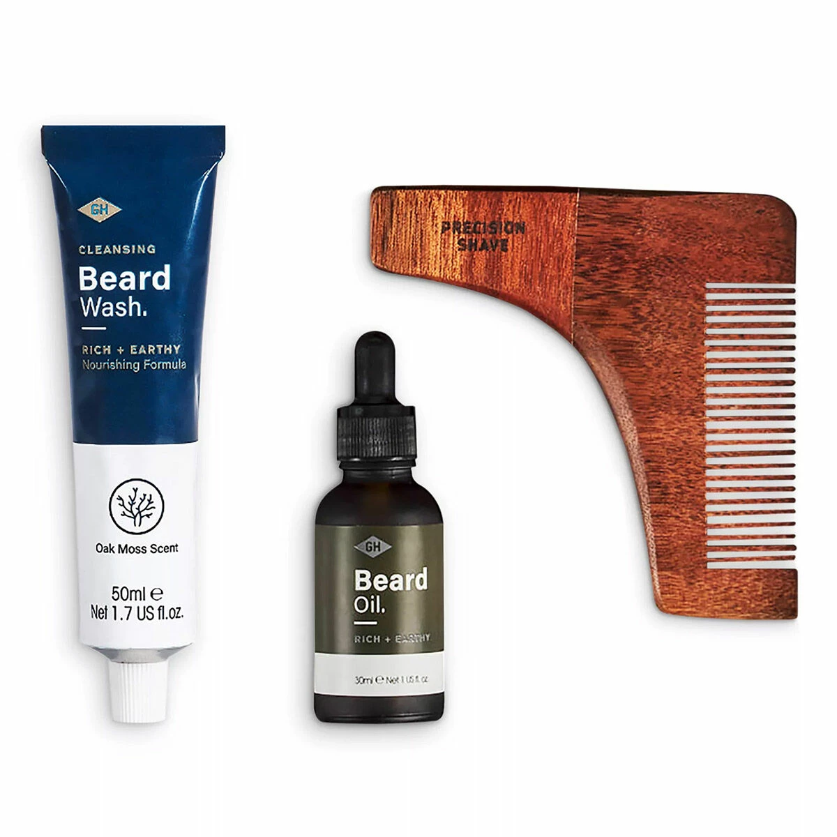 The kit includes everything they’ll need to cleanse, tame, and nourish their beard.