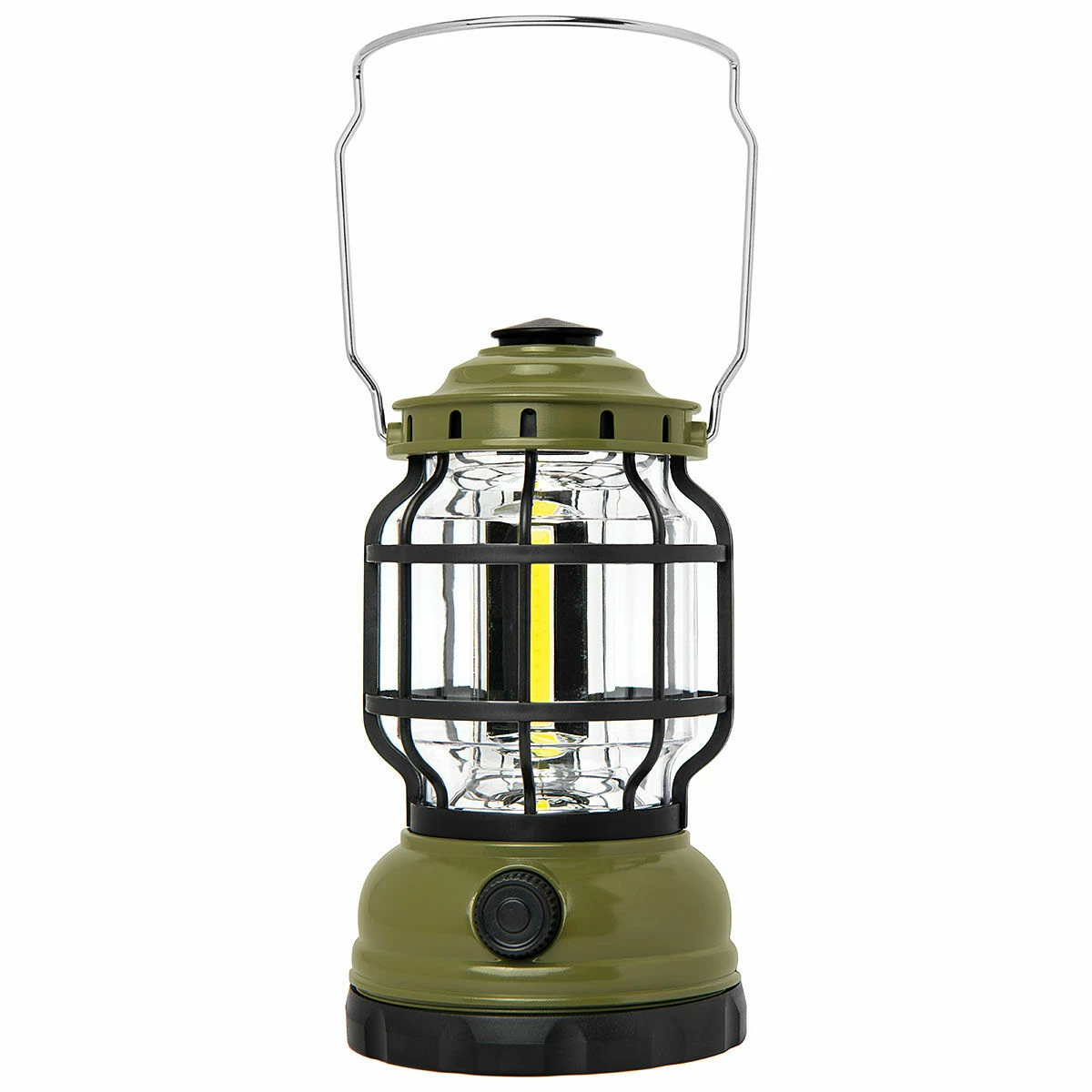 This bright camping lantern uses an energy efficient LED bulb. It is made from olive green, hard-wearing plastic, which is lightweight, making it perfect for your next hiking exploration. The dimmer helps to conserve the battery, whilst also creating the perfect ambiance. There is a silver handle so you can hang it from the roof of your tent or carry it with ease.