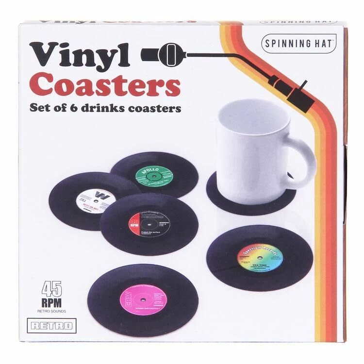 Each coaster measures 10.5cm in diameter, features a non-slip rubber base and even a hole in the centre, like a real record.