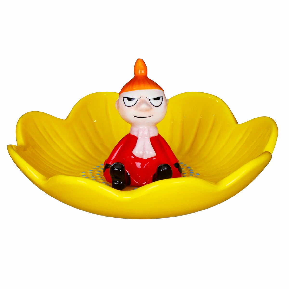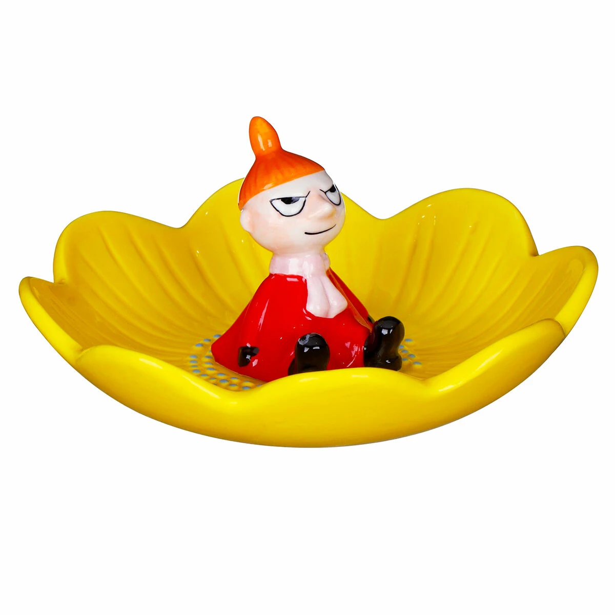 This cute and practical porcelain dish is perfect for keeping your jewellery, accessories, and trinkets safe upon your dresser. The cute trinket dish features Little My in her recognisable red dress and hair in a top knot, she is sat in the middle of a vibrant yellow flower which creates the space around her for your nick-nacks.